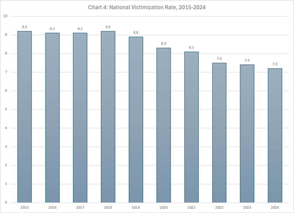 But what about changes over time? The fact that “victimization rates” reflect different policies and practices does not mean that trends over time don’t reflect real changes in the incidence of abuse and neglect. The national “victimization rate” declined in 2024 as it has done every year since 2018, even after the pandemic. It was down to 7.2 per 1,000 children in FFY 2024, compared to 9.2 per 1,000 children in 2018. Couldn’t this be good news about a decline in child abuse and neglect?